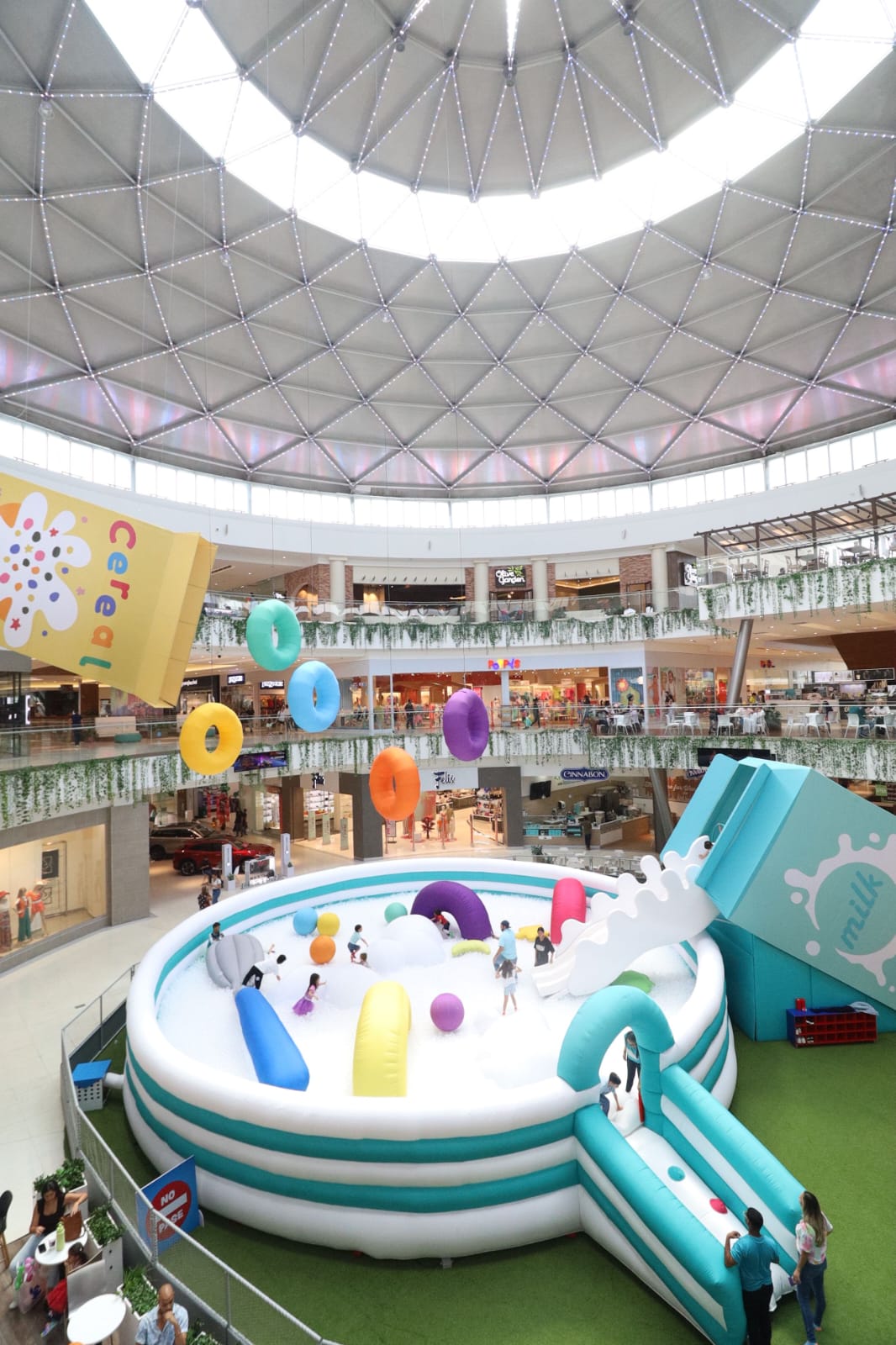 Panamá, enero de 2024. ¡El desayuno más grandioso de chicos y grandes está servido! La Fiesta de Cereales ha llegado a AltaPlaza Mall para revolucionar los momentos en familia. Se trata de un espacio divertido, diferente y muy fotogénico en la Plaza Central. Simulamos el desayuno favorito de muchos en formato gigante. Cuenta con una escalera y rampa con obstáculos que lleva a un tobogán de más de 2.5 metros de altura. Al final, te encontrarás con un enorme tazón de cereal que contiene más de 47 mil pelotitas que semejan la espuma de leche y otros elementos coloridos que harán vibrar todos los sentidos.