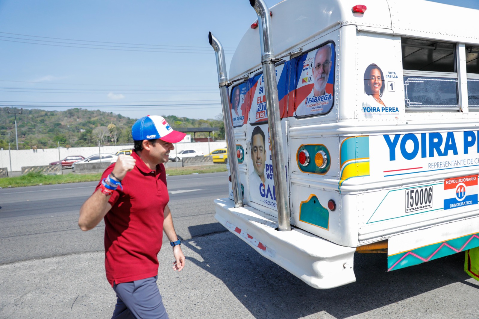 El que anda sobre ruedas es el candidato presidencial del Partido Revolucionario Democrático, PRD, José Gabriel Carrizo, ya que en su gira por Chilibre, se llevó la sorpresa de encontrarse con su imagen en uno de los pintorescos buses de Panamá, reconocidos como «diablos rojos», recorriendo diferentes calles del país.