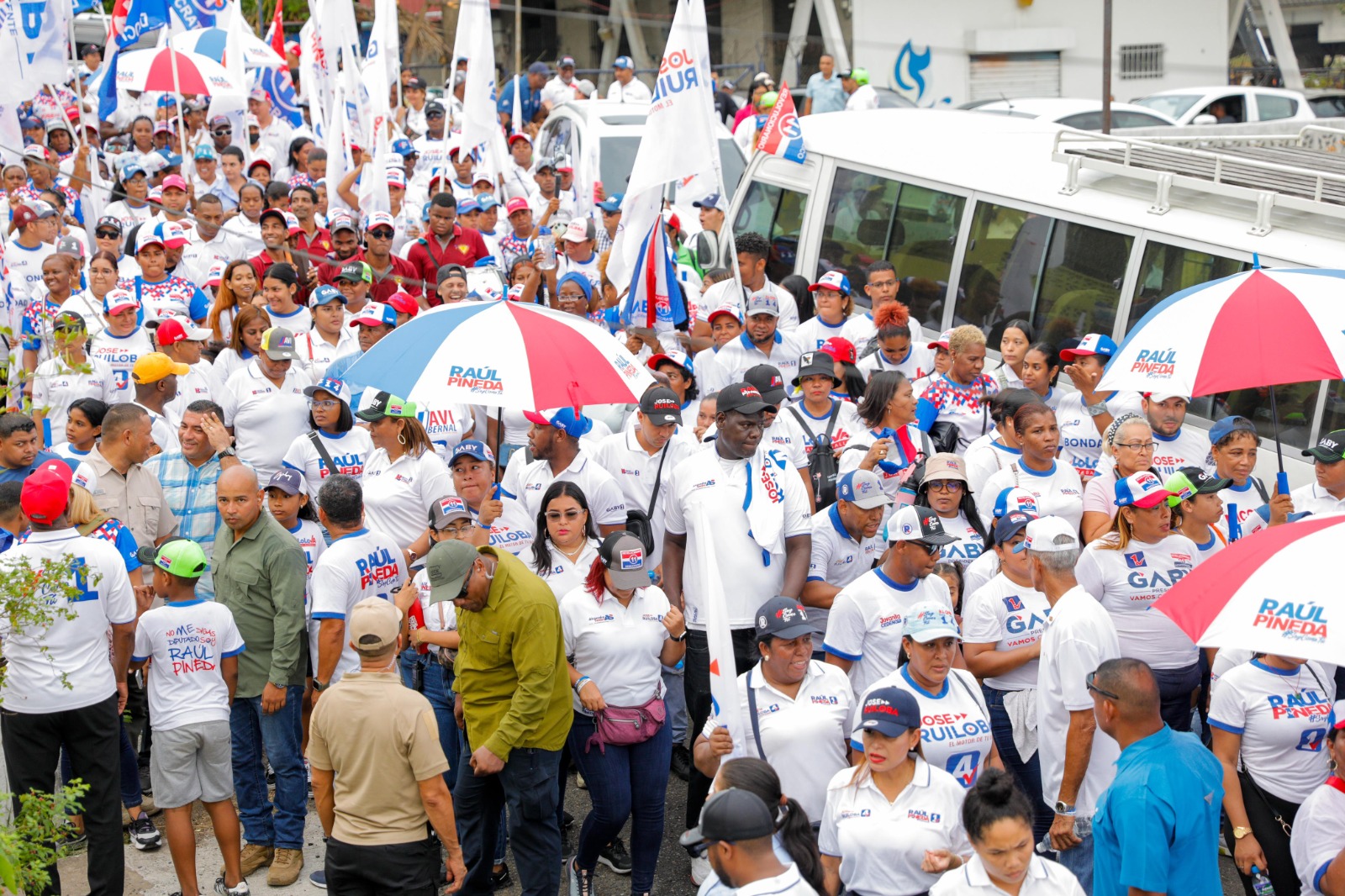 A poca distancia, los simpatizantes le acompañaban con pancartas, paraguas y consignas que al unísono retumbaban: “Gaby aquí está tu gente…Gancho al 1”. La atmósfera festiva reflejaba la esperanza y el optimismo de la comunidad por respaldar la oferta electoral del PRD/Molirena.